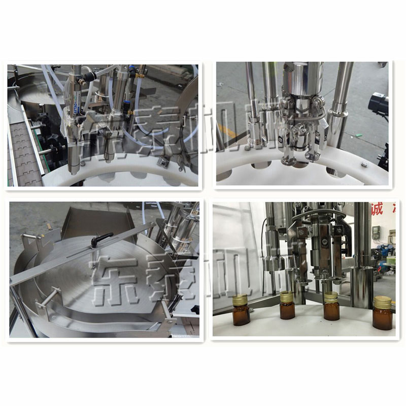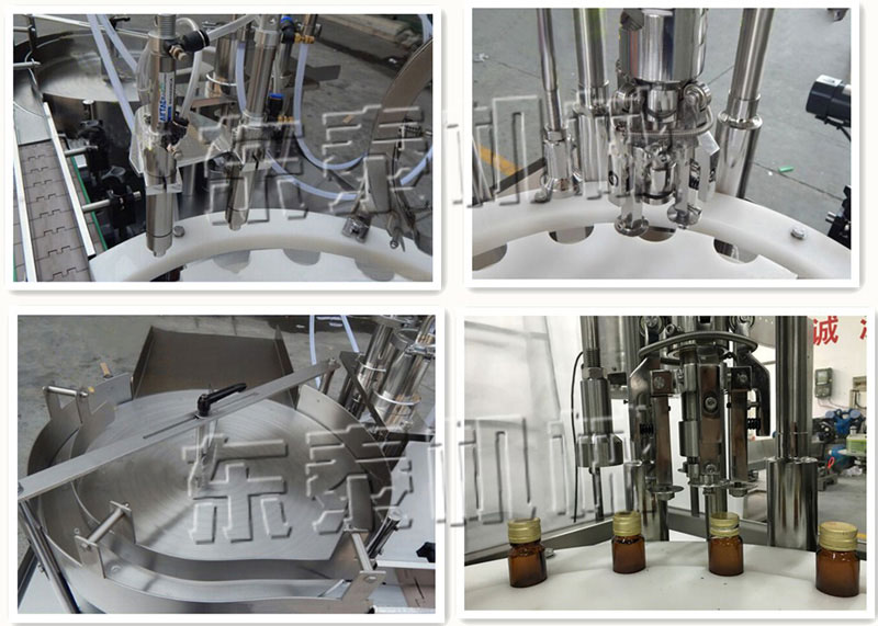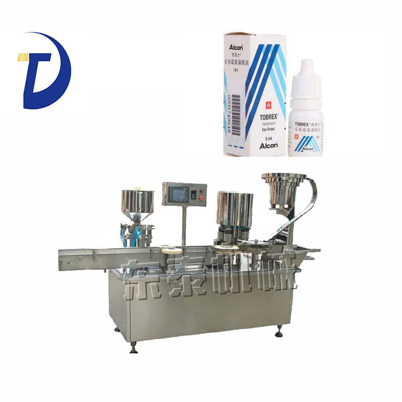 自动滴眼剂灌装机主要用于将督种液体灌入100-1000m的圆形和扁平塑料或玻璃瓶中。高精度CAM提供定位板,软木塞和瓶盖;加速CAM将盖头向下移动;带有恒定旋转臂的螺帽;爬升电动泵测量墳充量;并通过触摸屏控制所有动作。