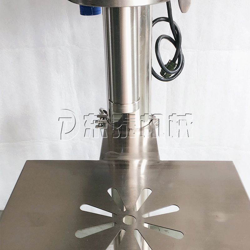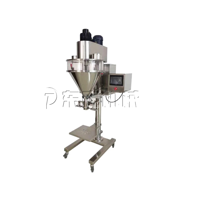 7.灌装过程添加料斗式进料器防止物料溢出并易于操作