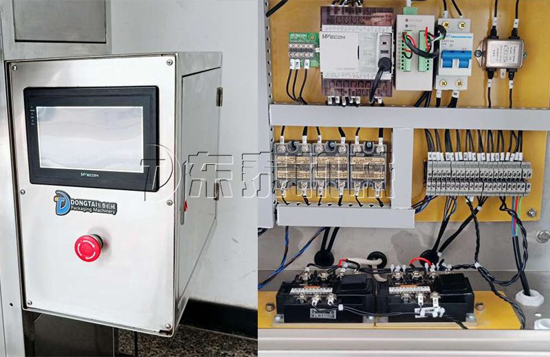 4、热封双路控温,智能温度控制,热平衡良好,保证封口质量,适用于多种包装材料。