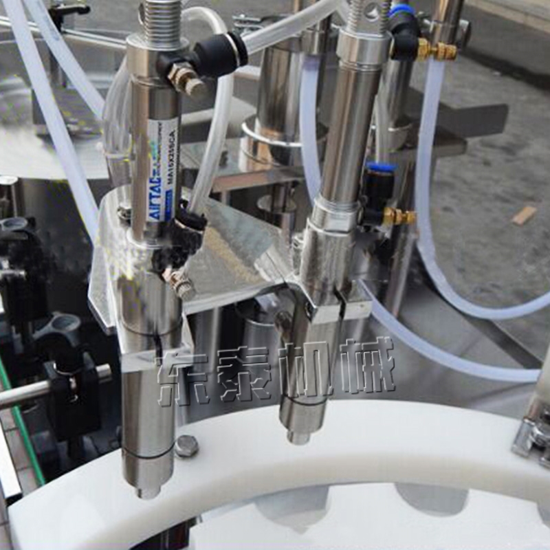 1、玻璃瓶灌装旋盖机灌装旋盖机精度高,调节剂量范围大。