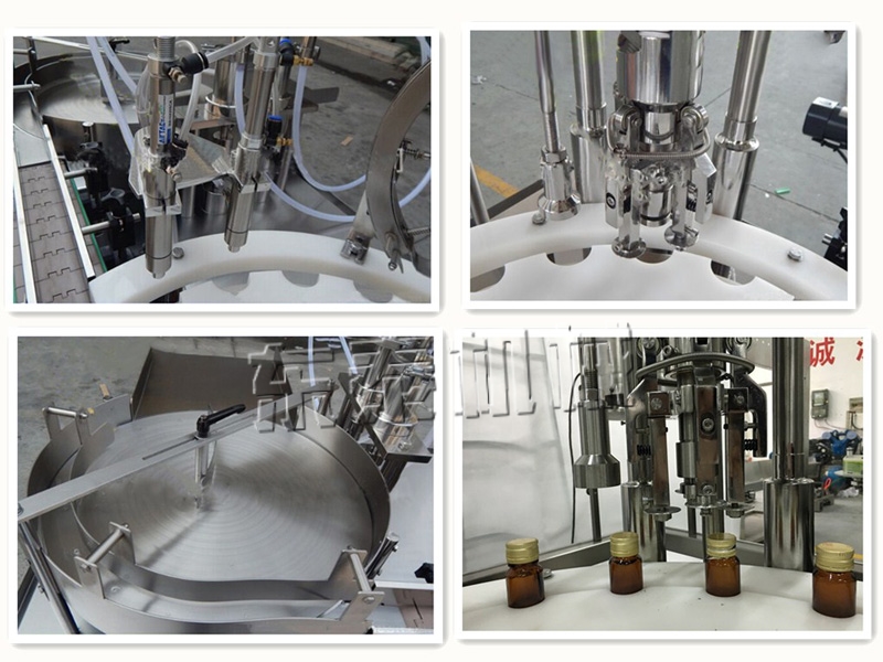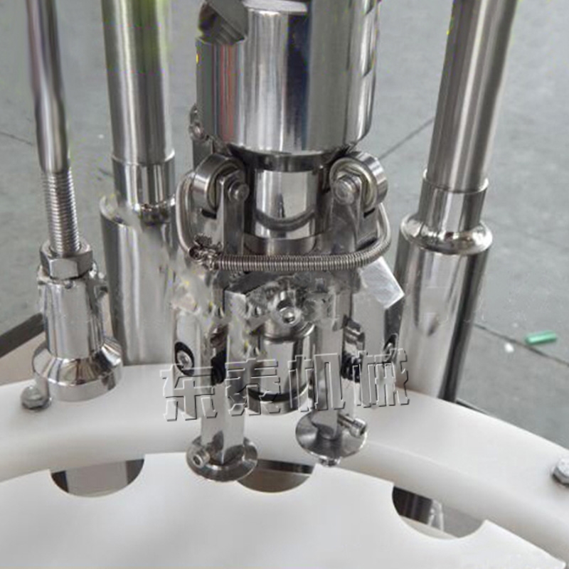 3、玻璃瓶灌装旋盖机灌装系统具有吸气功能,可防止液滴飞