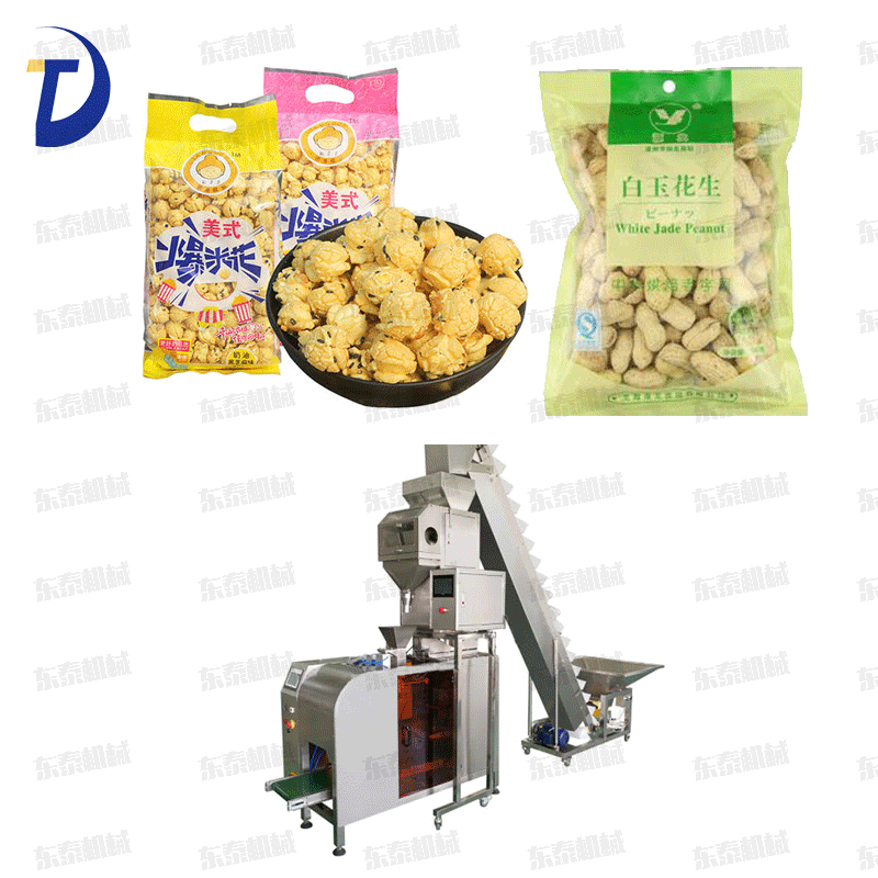 颗粒袋装机 全自动上袋称重灌装封口包装机 是我公司研制的新智能包装机,适用于要求计量精度高及易碎的散状物体的包装,如:膨化食品、薯片、锅巴、果冻、糖果、干果、坚果、开心果、花生、豆子、苹果片、水饺、汤圆、种子的计量包装以及包装后的封口工艺,该单工位颗粒定量包装机集灌装、给袋、计量、封口包装、输送为一体的自动称重式休闲食品包装机组。